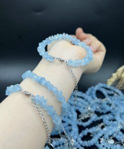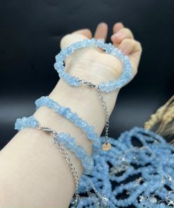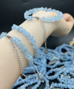 Vòng đá aquamarine vô định được làm từ đá aquamarine vụn. Hạt đá được mài nhẵn và xâu lại thành vòng. Những sản phẩm như thế này rất dễ làm, giá cả phải chăng, xinh xắn và hơn hết là rất dễ bán.